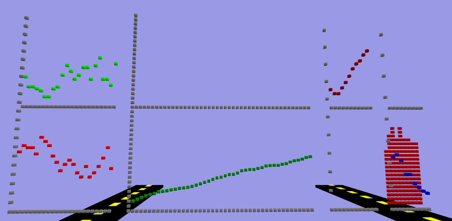 This semester a student decided to use his Boxels renderer to make an interactive graph explorer for a final presentation in a non-computer science course. The student wrote a script to translate his data on automobiles into a file of box descriptions. Here's a shot of the viewer looking at several of the graphs: